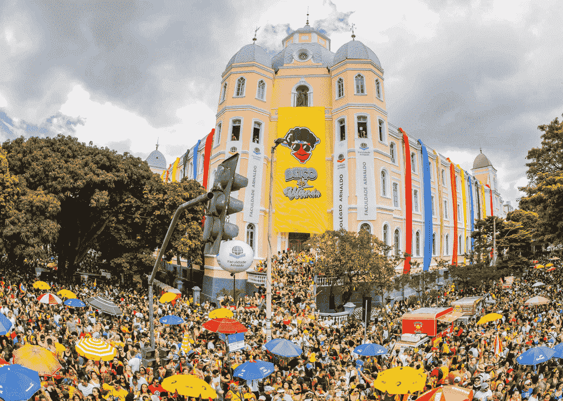 O cortejo no carnaval 2026 de Belo Horizonte celebra os 10 anos de atividade do bloco e será realizado no domingo, dia 15 de fevereiro. O trajeto vai da Avenida Brasil, 1245 – Funcionários em direção até Avenida do Brasil, 845 – Santa Efigênia, e o público estimado é de mais de 100 mil pessoas.