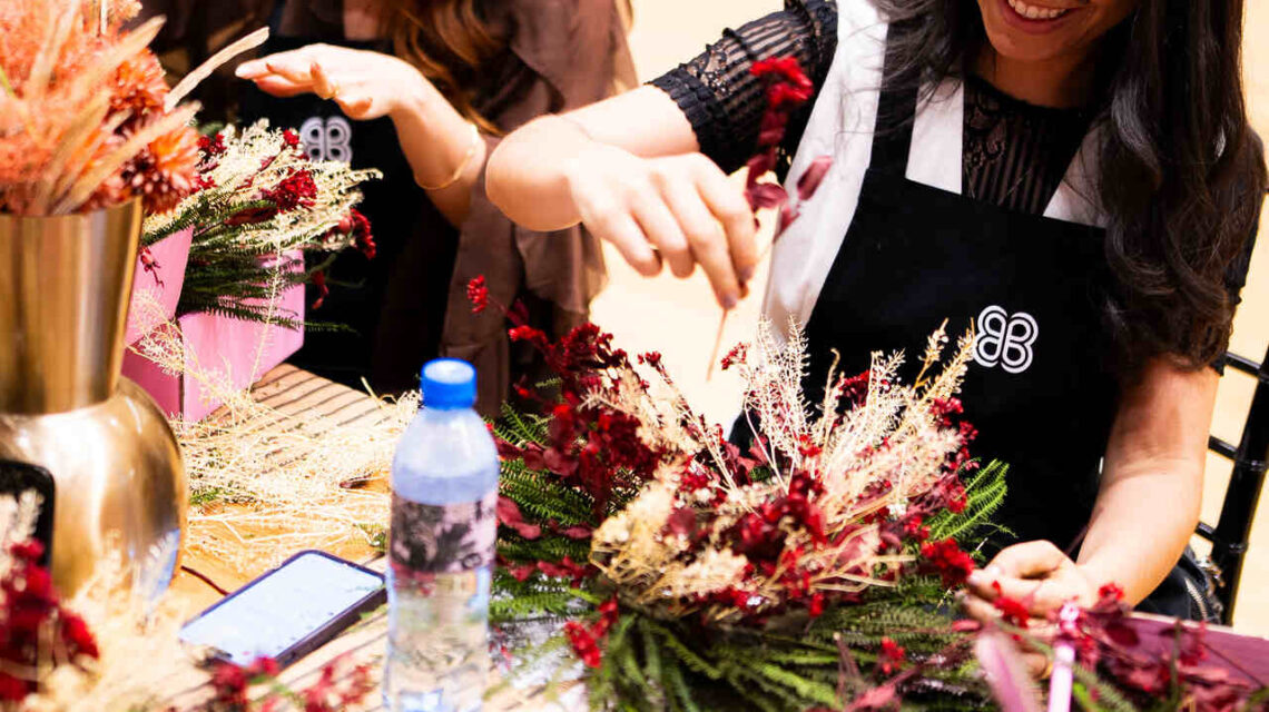 Durante a experiência, as participantes foram guiadas por uma florista especializada, que apresentou técnicas de composição, escolha de espécies e harmonização de cores, permitindo que cada uma criasse sua própria guirlanda personalizada. A atmosfera delicada, repleta de flores e detalhes cuidadosamente pensados, transformou o encontro em uma vivência única, unindo estilo, bem-estar e conexão.
