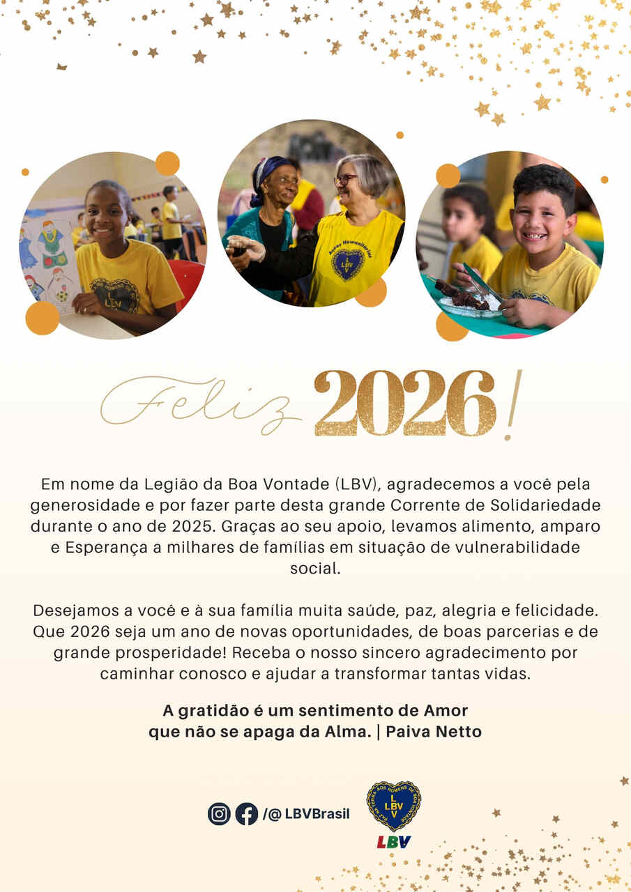 Quem deseja continuar transformando vidas pode apoiar as ações da LBV por meio de doações em seu site oficial www.lbv.org; pela chave: pix@lbv.org.br; ou pelo 0800 055 50 99. Ajude a levar alimento, cuidado e esperança a milhares de famílias ao longo de todo o ano.